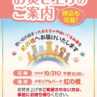 共同墓所祭壇へお供えのおもちゃやぬいぐるみ等のお焚き上げ供養を行います。 実施は毎年10月上旬頃を予定しており …